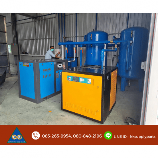 จำหน่ายเครื่องปั๊มลม SPARE PART FOR SCREW PISTOR VANE AIR COMPRESSOR เค.เค.ซัพพลายฯ จำหน่ายเครื่องอัดลม HITACHI, COAIRE, FULLAIR และจำหน่ายเครื่องทำลมแห้ง ORION, COAIRE, FULLAIR ราคาส่ง ให้กับวิศวกรเครื่องกลโรงงาน-วิศวกรไฟฟ้า ร้านค้าตัวแทนต่างจังหวัดทั่วประเทศ มีช่างเทคนิคบริการติดตั้งเดินระบบลม-ระบบทำลมแห้ง ให้ลูกค้าในพื้นที่ นครปฐม ราชบุรี กาญจนบุรี สมุทรสาคร สมุทรสงคราม สมุทรปราการ นนทบุรี ปทุมธานี จำหน่ายปั๊มลมสกรู Screw air compressor แบรนด์ FULLAIR, ปั๊มลม HITACHI, ปั๊มลม BOLDOR มีหลายรุ่นให้เลือก มีสเปคและรุ่นที่ตอบโจทย์ เราให้บริการไวใส่ใจลูกค้า ราคาไม่แพง เครื่องอัดลมอัจฉริยะระบบสกรู B&D Intelligent PM VSD screw air compressor: EPM series ขนาด 7.5 KW ถึงขนาด 55 KW ชนิดคูลลิ่งแบบ Air-cooling และ Air or Water-cooling เครื่องอัดลมระบบสกรู FullAir screw air compressor / Direct driving air compressor ขนาด 7.5 KW ถึงขนาด 250 KW ชนิดคูลลิ่งแบบ Air-cooling, แบบ Air or Water-cooling และแบบ Water-cooling ปั๊มลมแบบลูกสูบ ขับด้วยสายพาน FullAir piston air compressor ขนาด 7.5 KW: ¼ HP ถึงขนาด 11 KW: 15 HP จำหน่ายถังพักลมและรับผลิตถังพักลม ขนาด 36 ลิตรถึงขนาด 10,000 ลิตร